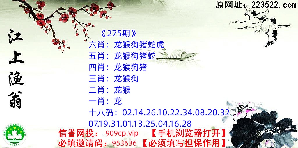 274期澳门跑狗一字記之曰:【予】 長戬揮起,戲站鞍頭,当直巡更近五云 山林寂靜,閑伴身旁,半园花木能招隐 红字:号天扣地 玄機測字【祥】,共十划 暗碼:23 31 38 42 解:图片显示一个男子在吹号解出男肖虎鼠猴狗龙马牛,本期红字带来的是号天扣地的意思是指向天呼号并用头部撞击地面,用以描述极度悲痛的情状诗词的意思是描述了一种山林幽静、无人打扰的环境,同时内心闲适安宁的状态,强调自然与心灵的和谐共生。? 该短语并非直接出自古典诗词,但意境与王维《鸟鸣涧》中“人闲桂花落,夜静春山空”的禅意美学高度契合,体现以动衬静、物我交融的文学传统 综合推论:狗羊马猪猴牛蛇